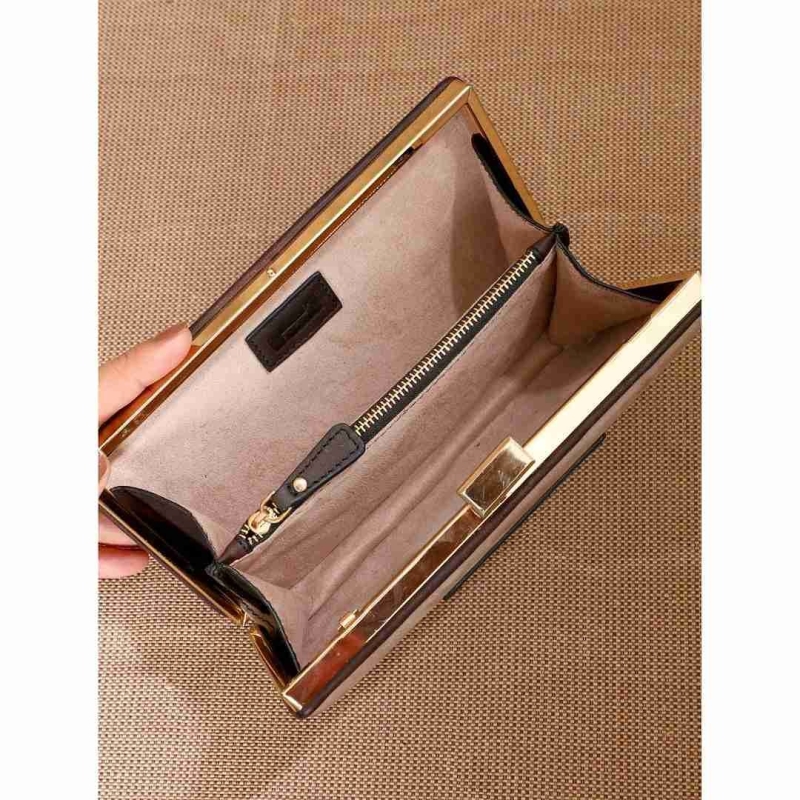 Crafted from gorgeous leather, it has a clutch clasp closure that adds a touch of vintage charm while keeping your essentials secure. Inside, a center zip divider helps organize your items, making it easy to carry your phone, makeup, and wallet. Wear it as a handheld clutch for your evening events.