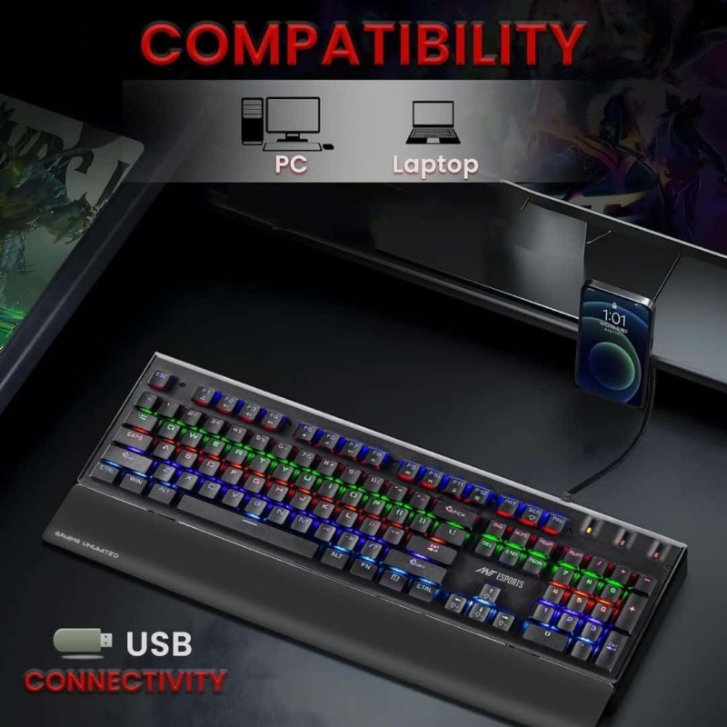 The Ant Esports MK3500 is a full-sized mechanical keyboard designed for gamers and office use alike. It features a sturdy aluminium alloy panel and an ergonomic palm rest for comfort during long sessions. With 104 anti-ghosting programmable keys and independent switches for fast response, this keyboard ensures optimal performance for gaming and typing tasks. Its sleek design and wide compatibility with various systems make it a durable and reliable choice for any setup.