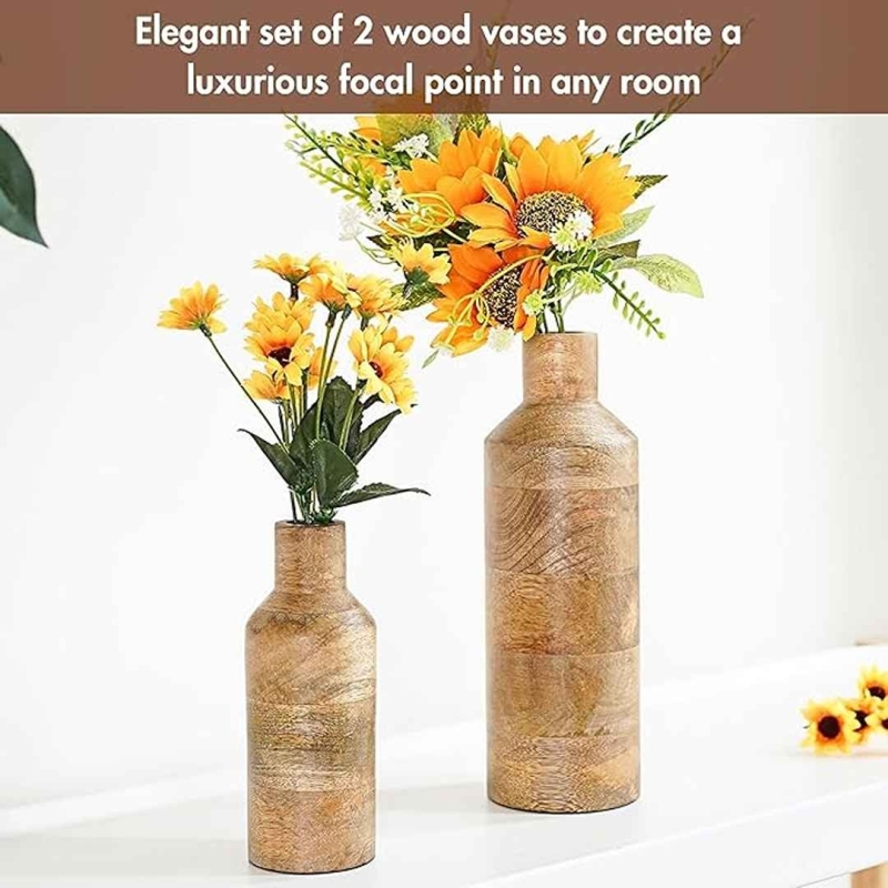 This handcrafted mango wood vase set from BEHOMA features a natural light-brown finish and a stylish bottle-shaped design. Made by skilled Indian artisans, these durable wooden vases add a warm, rustic charm to any space and are perfect for displaying real or faux flowers. Ideal for gifting and home décor, the set is securely packed and easy to maintain with simple dry-cloth cleaning.