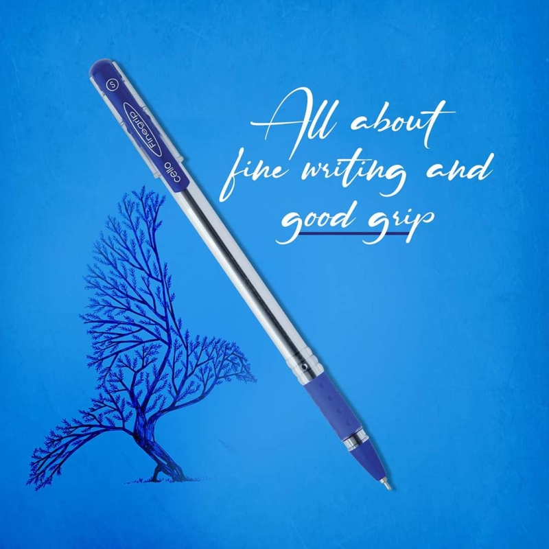 The Cello Finegrip Ball Pen Jar (Blue, Pack of 25) offers smooth and consistent writing with its 0.7mm fine tip and soft Elasto grip. Designed for everyday use, these pens feature a strong, durable plastic body and water-based blue ink for a sleek writing experience. Ideal for adults, students, and office use, the pen jar provides great value with 25 high-quality ballpoint pens made in India.