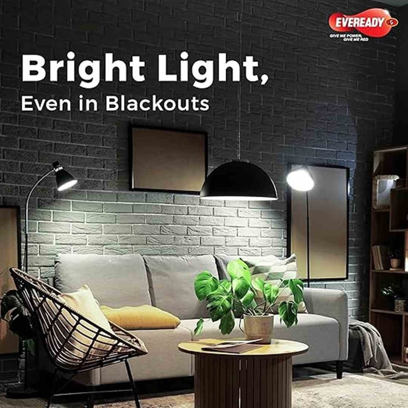 The Eveready 9W Emergency LED Bulb delivers bright cool-daylight illumination with energy-efficient performance. Equipped with a built-in Li-ion battery, it provides up to 3 hours of backup during power cuts and automatically switches to battery mode for uninterrupted lighting. Its flicker-free output, durable polycarbonate body, and convenient B22D base make it a reliable choice for home and indoor use.