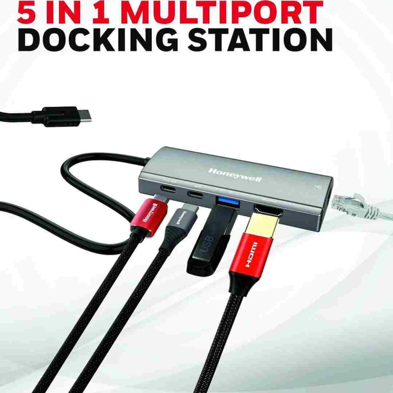 The Honeywell Platinum Series Type-C Mini Docking Station is a compact, high-performance hub that expands a single USB-C port into 5 essential connectivity options. It features 4K HDMI output, Gigabit Ethernet, USB 3.0 high-speed data transfer, and 85W Power Delivery charging, making it ideal for work, entertainment, and travel. Designed for universal Type-C compatibility, it delivers fast, reliable performance in a sleek silver form factor and is backed by a 3-year manufacturer warranty.