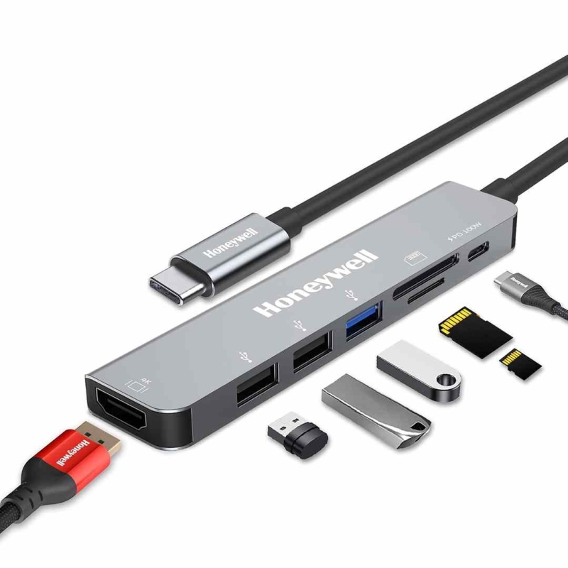 The Honeywell 7-in-1 Type-C Docking Station (HC000017/LAP/CDK) is a compact, plug-and-play connectivity solution that expands a single USB-C port into seven essential ports. It supports 100W Power Delivery charging, 4K UHD HDMI display output, high-speed USB data transfer, and SD/MicroSD card access. Designed for MacBook Pro and other USB-C/Thunderbolt 3 devices, it delivers reliable performance for work, entertainment, and travel in a sleek silver design.