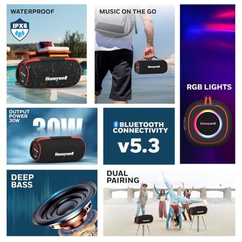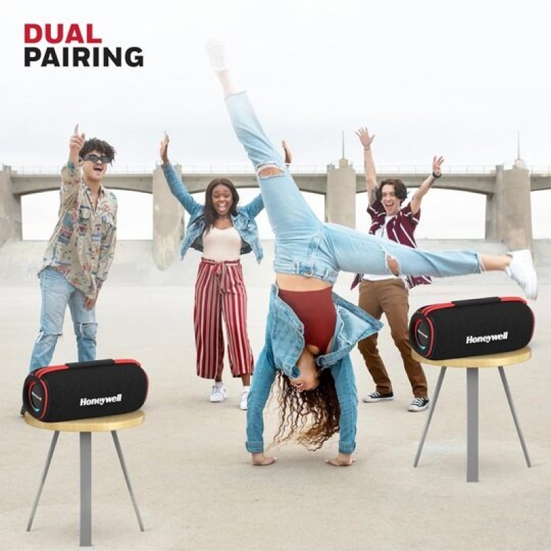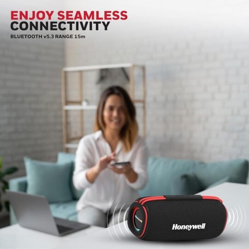 The Honeywell Trueno U400 is a powerful 30W portable Bluetooth speaker designed to deliver rich stereo sound with deep bass. Equipped with Bluetooth v5.3, IPX6 waterproof protection, vibrant RGB lighting, and a long-lasting 5000mAh battery, it’s perfect for indoor and outdoor entertainment. With twin bass radiators and a compact, portable design, the Trueno U400 turns every moment into an immersive audio experience.