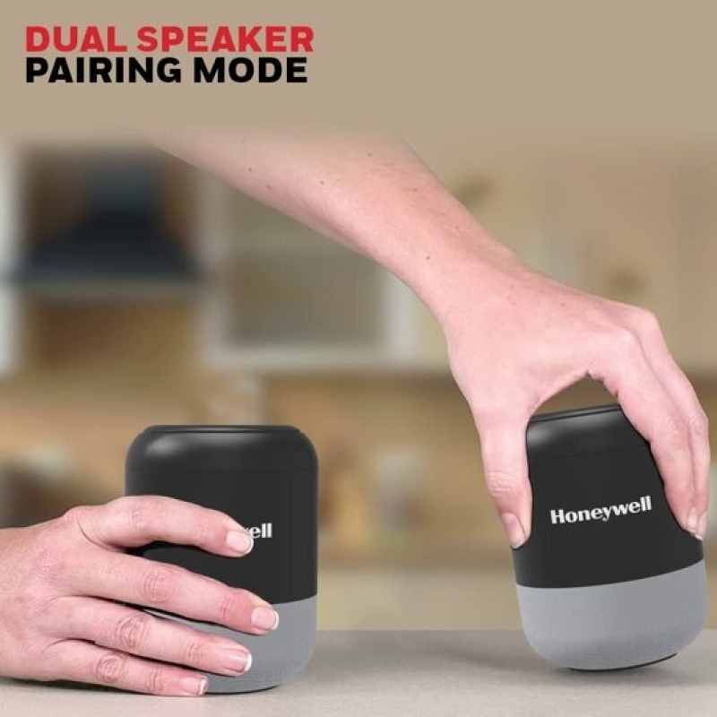 The Honeywell Trueno U100 is a compact 10W stereo Bluetooth duo speaker system designed for meetings, gatherings, and everyday music listening. Featuring Bluetooth v5.0 with self-pairing, it delivers seamless wireless audio, clear stereo sound from dual 5W speakers, and reliable performance with a 1200mAh battery offering up to 12 hours of playtime per speaker. With IPX4 splash resistance, built-in mic for calls, and multiple playback options (Bluetooth, USB, SD card), it’s a versatile and portable audio solution.