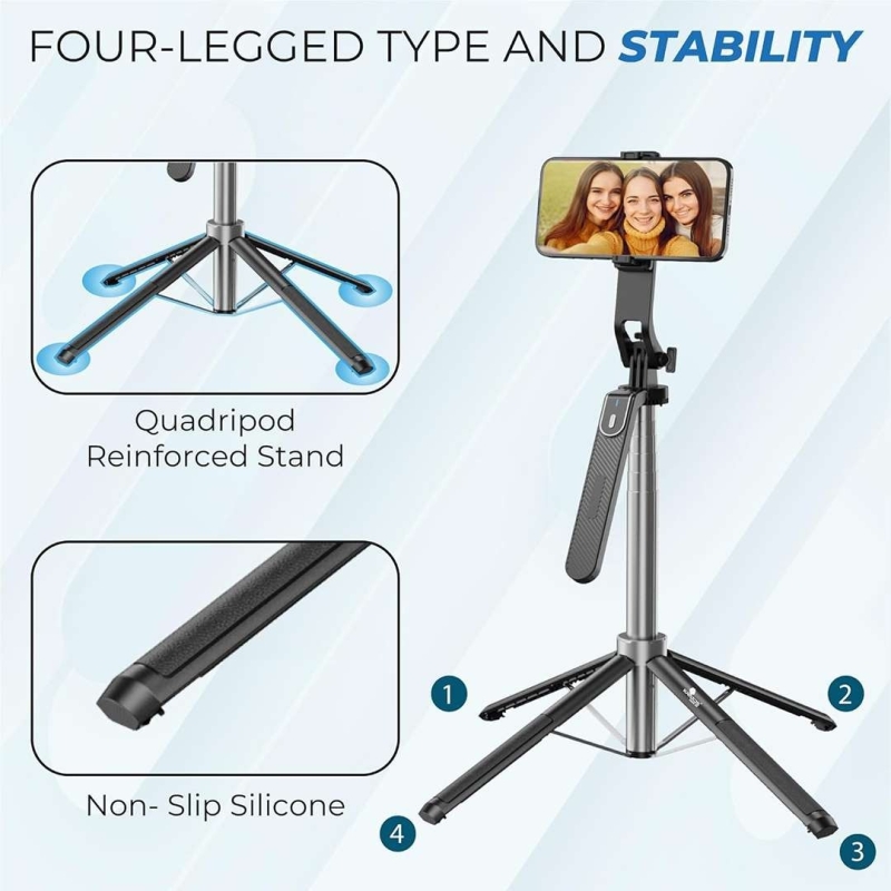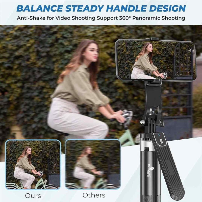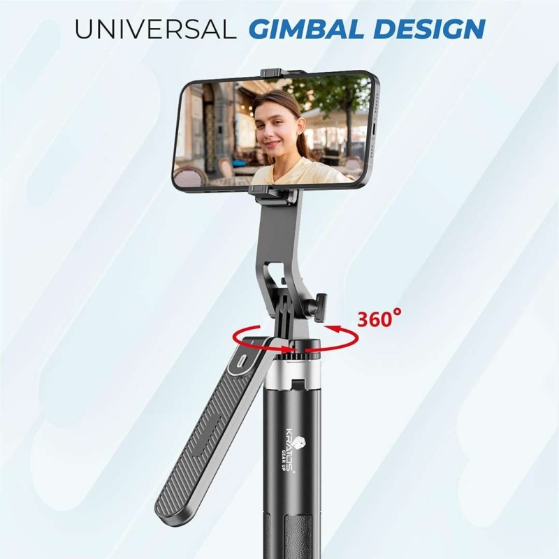 The Kratos Selfie Stick Tripod is a versatile, all-in-one solution for photography, videography, vlogging, and live streaming. Featuring a 360° rotating pan-handle with anti-shake balance, it ensures smooth and professional shots. The stick extends up to 62 inches (158 cm) for wide and high-angle views, yet folds down to a compact 13.2 inches, making it easy to carry. Built with premium aluminium and ABS, it offers durability, lightweight handling, and stable support with its 4-leg tripod design. Compatible with smartphones, cameras, GoPro, and accessories, it also includes a rechargeable Bluetooth remote for convenient wireless shooting.