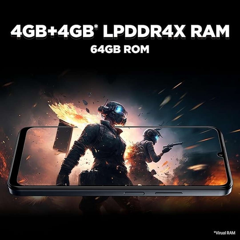 The Lava Bold N1 delivers smooth and efficient performance with 4GB RAM, 64GB storage, and a powerful MediaTek Helio processor (2.1/2.3GHz). Enjoy vibrant visuals on a large 6.75" HD+ display with a fluid 90Hz refresh rate. Capture crisp photos using the 13MP AI dual rear camera and 5MP selfie camera. The long-lasting 5000mAh battery with 10W Type-C charging keeps you going all day, while IP54 protection, fingerprint unlock, stereo speakers, and Android 14 ensure a complete, reliable, everyday smartphone experience.