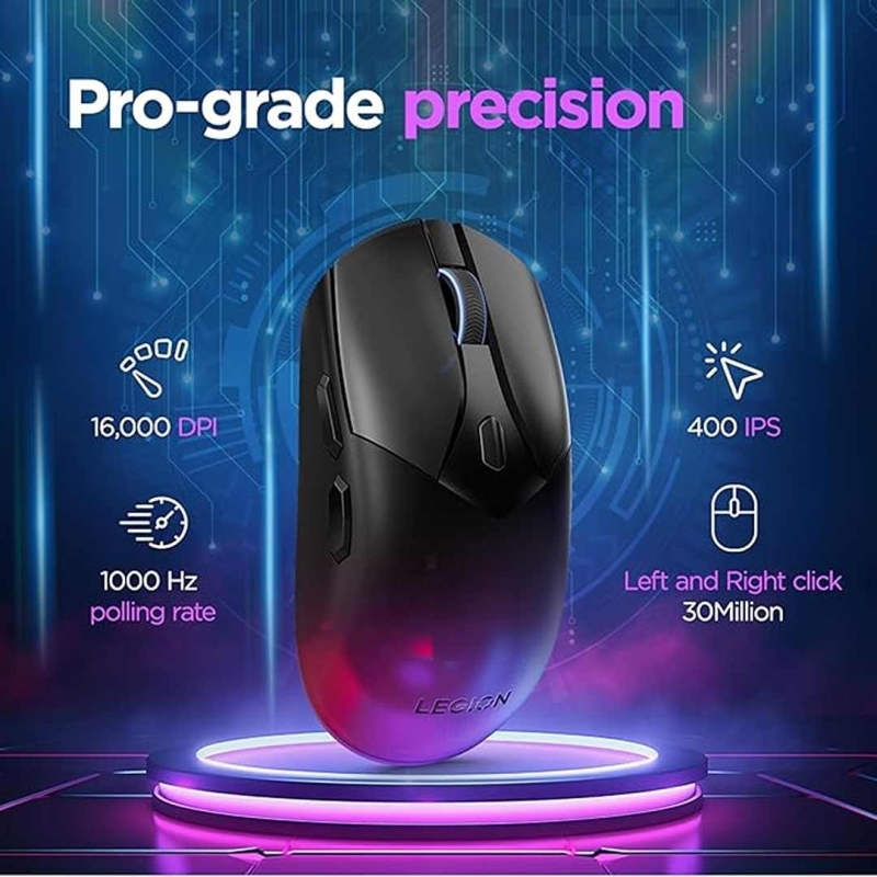The Lenovo Legion M410 Dual Mode Gaming Mouse is engineered for competitive performance with both 2.4G wireless and wired connectivity. Powered by a Pixart PAW3335 sensor, it delivers ultra-precise tracking up to 16,000 DPI, immersive two-zone RGB lighting, and durable 30-million-click switches—perfect for serious gamers seeking speed, accuracy, and flexibility.