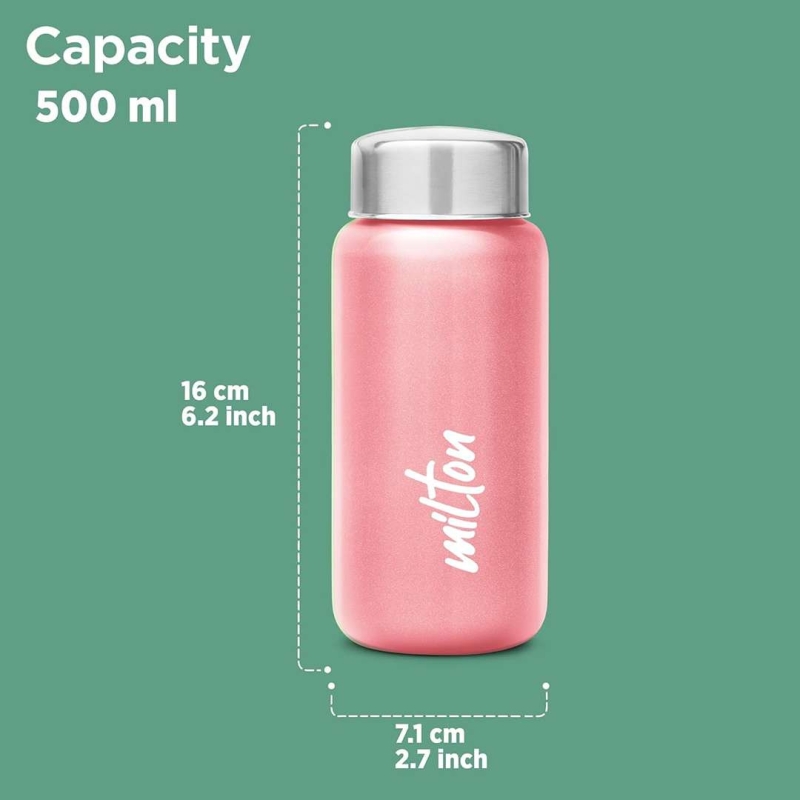 The MILTON Aqua 500 ml Stainless Steel Water Bottle is designed for everyday use with its sleek, single-wall construction and durable stainless-steel body. Perfect for adults and kids, it features a leakproof design to prevent spills, making it ideal for school, hiking, office, and travel. BPA-free, ISI-certified, and crafted by India's leading bottle brand, this lightweight and reusable bottle delivers reliability with elegant Light Pink styling.