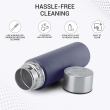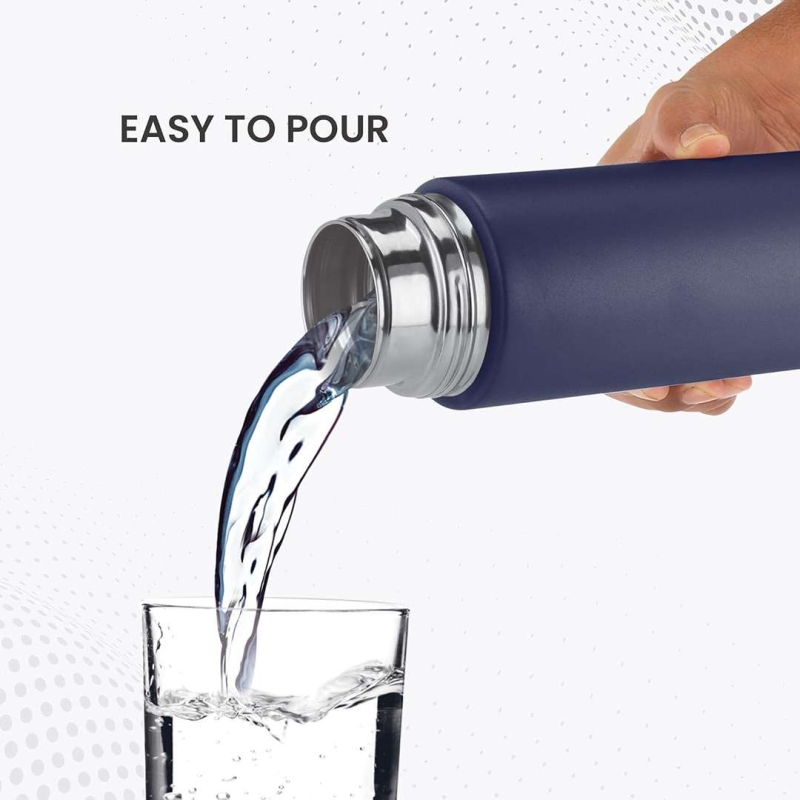 The MILTON Glide 1000 ml Stainless Steel Water Bottle in Navy Blue is a durable, lightweight, and rust-resistant bottle ideal for commuting, school, and office use. Made from 100% food-grade stainless steel, it is odor-free, easy to clean, and features a threaded leakproof cap for safe and convenient carrying. Its ergonomic design combines comfort, style, and practicality, making it perfect for adults on the go.