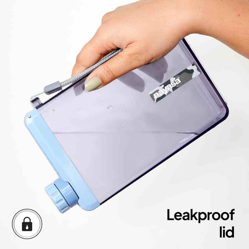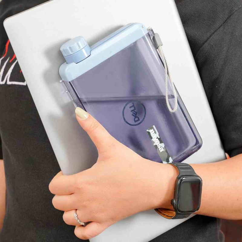 The Nayasa Zelda 450 ml slim-neck plastic bottle is a stylish, reusable, and space-saving solution for staying hydrated on the go. Made from BPA-free, durable plastic, it is freezer-safe, leakproof, lightweight, and ideal for school, college, office, gym, or travel. Its flat, rectangular design easily fits in bags, and it features a secure side lid with a handy grip band for convenient use.