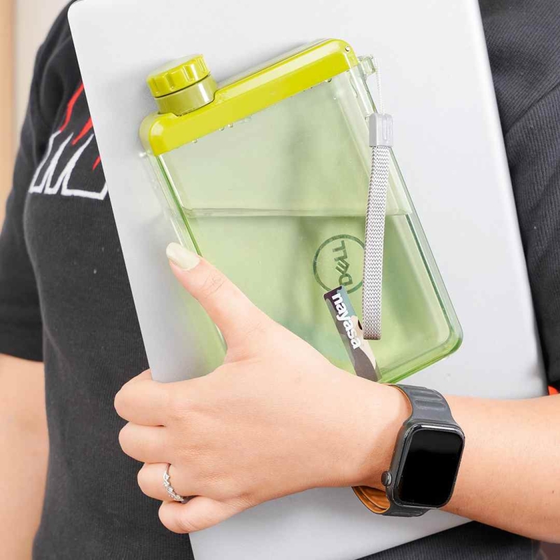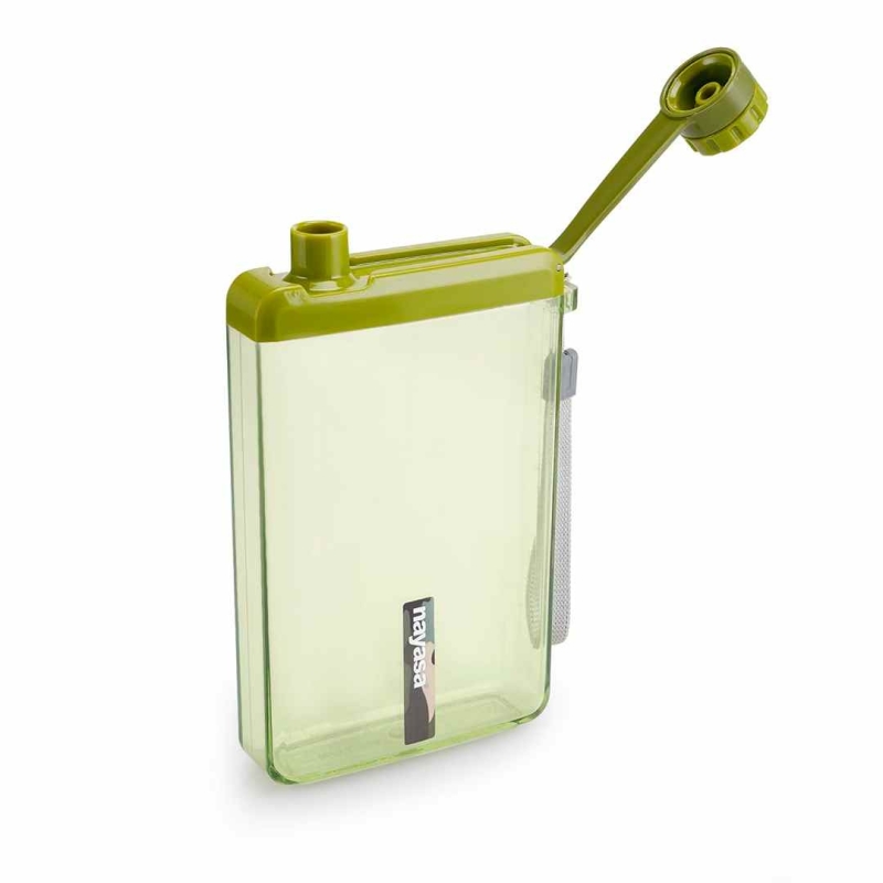 The Nayasa Zelda 450 ml standard plastic bottle in green is a compact, reusable, and leakproof hydration solution. Made from BPA-free, durable plastic, it is freezer-safe, lightweight, and designed to fit easily in school bags, office bags, and backpacks. Its flat, rectangular shape with a secure side lid and grip band makes it convenient for travel, school, office, or sports use.