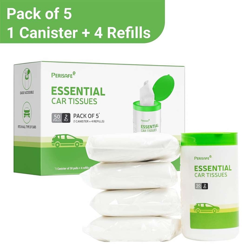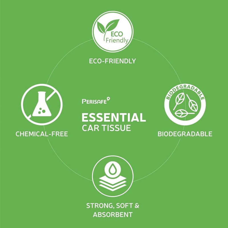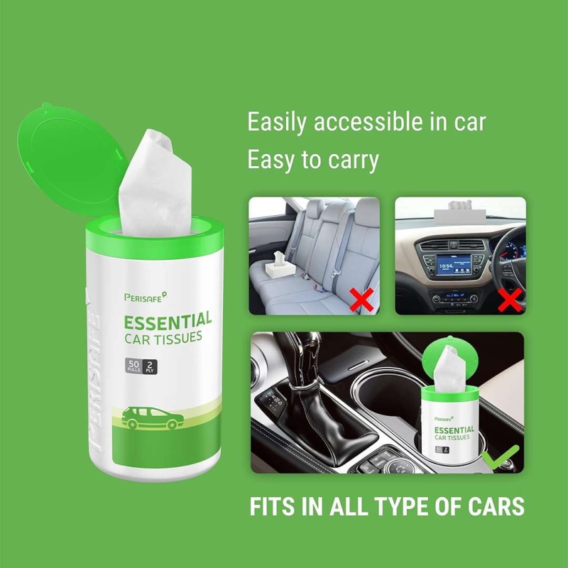 Perisafe Essential Car Tissues are eco-friendly, chemical-free, and designed for convenient use in any car. The modern canister-style pack fits perfectly in cup holders, ensuring tissues are always within reach. Made from soft, strong, and highly absorbent 2-ply material, these biodegradable tissues are safe for all skin types and ideal for daily on-the-go use.
