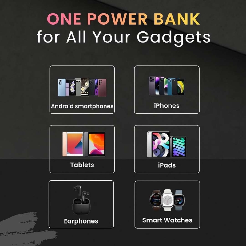 The Portronics PowerPod 20K is a high-capacity 20,000mAh power bank designed for fast and reliable charging on the go. Featuring 22.5W Mach USB-A and 20W PD Type-C ports, it can charge two devices simultaneously. Equipped with multi-layered safety protection, LED indicators, and a wake-up button, it is travel-friendly and compatible with smartphones, tablets, smartwatches, earbuds, and more. Ideal for long trips or daily use, this power bank combines power, speed, and convenience in a sleek black design.