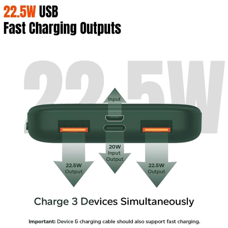 | Max Output Power | 22.5W (USB), 20W (Type-C PD) |