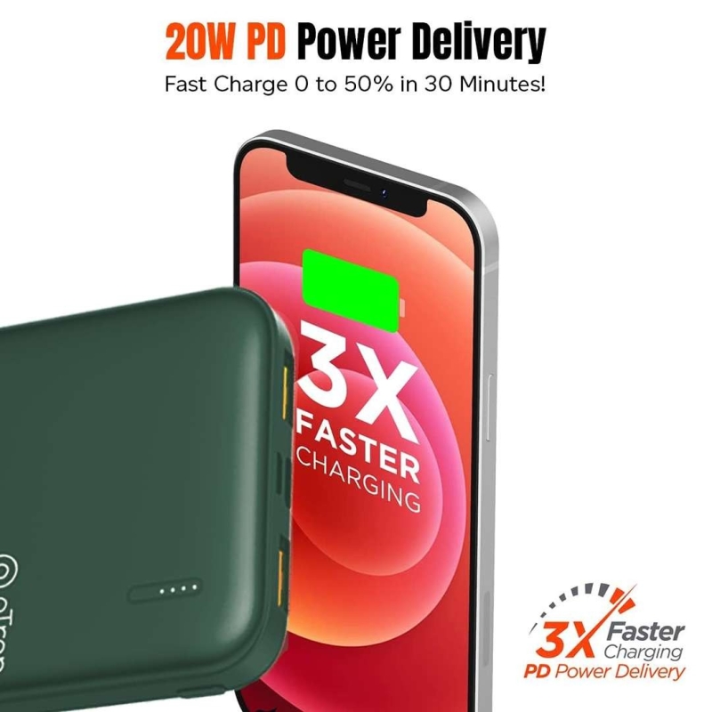 The pTron Dynamo 10000mAh Power Bank (Dark Green) is a Made-in-India, fast-charging power bank delivering up to 22.5W output with support for PD and Quick Charge. Featuring multiple output ports, LED battery indicators, pass-through charging, and advanced safety protection, it allows you to charge up to three devices simultaneously with confidence.