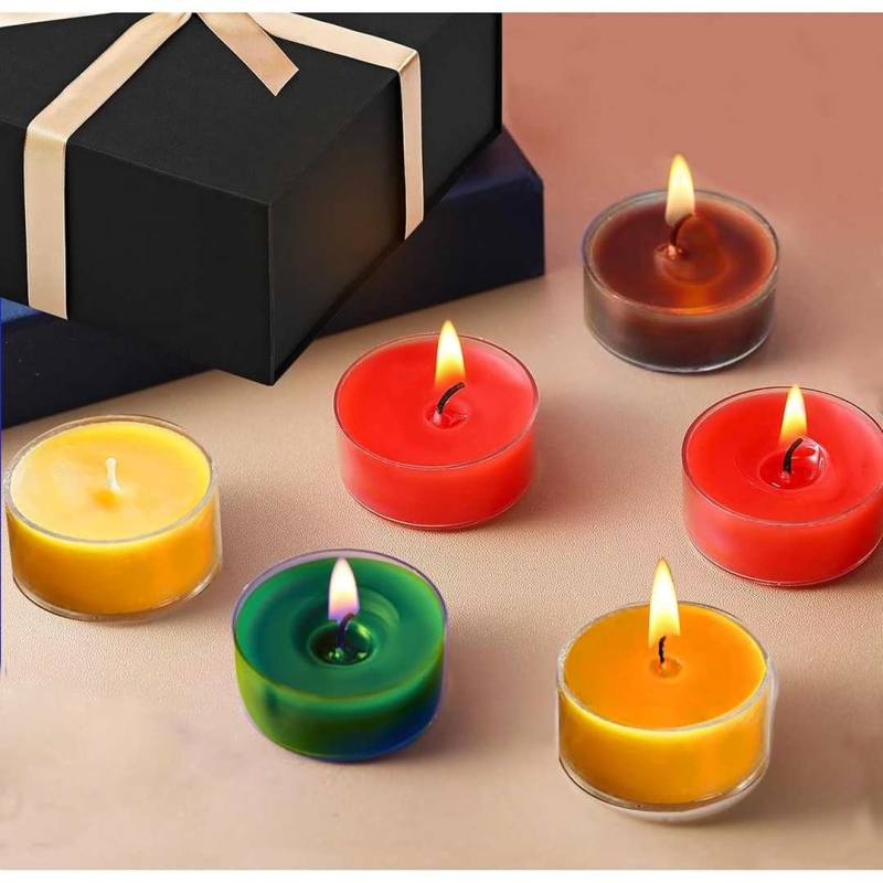 Create a warm and welcoming ambiance with Pure Source India’s Multicolor Tealight Candles. Made from 100% paraffin wax with clean-burning cotton wicks, these smokeless, odorless candles offer 2.5–3 hours of burn time. Ideal for weddings, receptions, spas, and home décor, each round tealight comes in a durable plastic cup, perfect for floating arrangements or decorative accents.