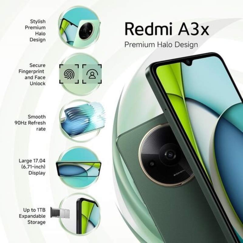 The Redmi A3X is a lightweight and reliable smartphone powered by Android 14 and a Snapdragon processor with 3GB RAM for smooth everyday performance. Designed with a sleek bar form factor, it features a 720p display, essential connectivity options like Bluetooth, Wi-Fi & USB, and offers impressive 29.8 hours of talk time. With built-in GPS and a 3.5mm audio jack, this device combines functionality with convenience, making it ideal for daily use.
