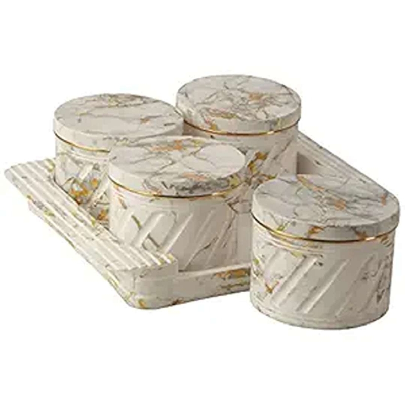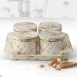 The Selvel Dry Fruit Container Tray Set is a 4-piece airtight, food-grade polypropylene container set with a serving tray. Each container has a 430ml capacity, ideal for storing dry foods, snacks, or gifting during festive occasions. Stackable and durable, it keeps contents fresh while saving space in your kitchen.