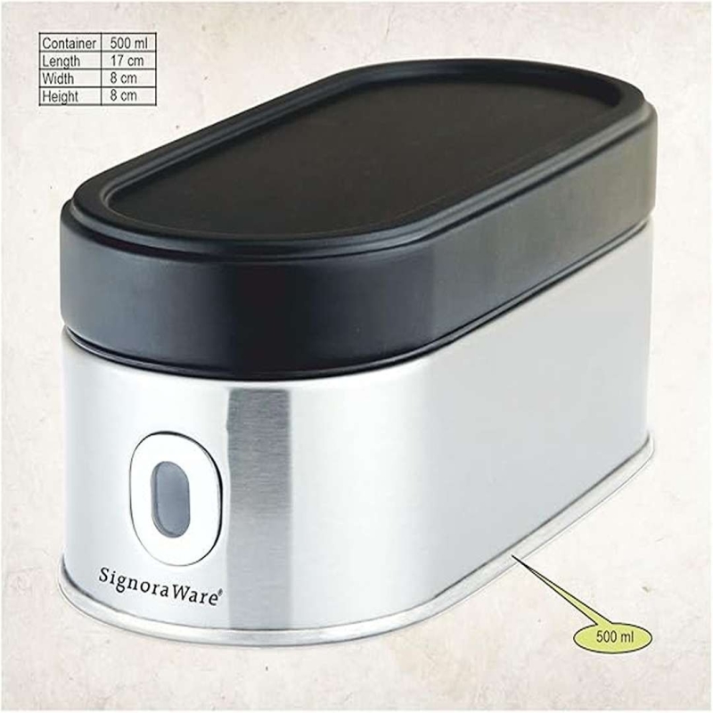 The Signoraware Modular Steel Container is a compact, durable, and airtight 500 ml stainless-steel storage solution designed to keep food fresh and spill-proof. With BPA-free lids, a sleek oval shape, and dishwasher-safe construction, it is ideal for storing snacks, leftovers, or lunch items at home or on the go.
