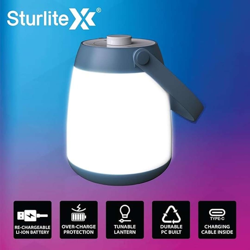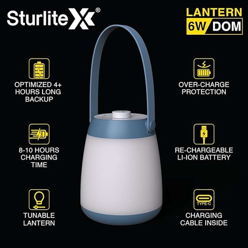 The Sturlite Dom LED Lantern is a lightweight, multicolor emergency light designed for versatility and portability. With adjustable color temperatures (3500K–6500K), a soft glare-free light, and wide coverage optics, it's perfect for both indoor and outdoor use. The built-in 2000mAh rechargeable lithium-ion battery offers up to 4 hours of backup with an 8-hour charge time via a convenient Type-C port. Made from durable polycarbonate, this compact lantern is travel-friendly and user-friendly with its rotatory knob control.