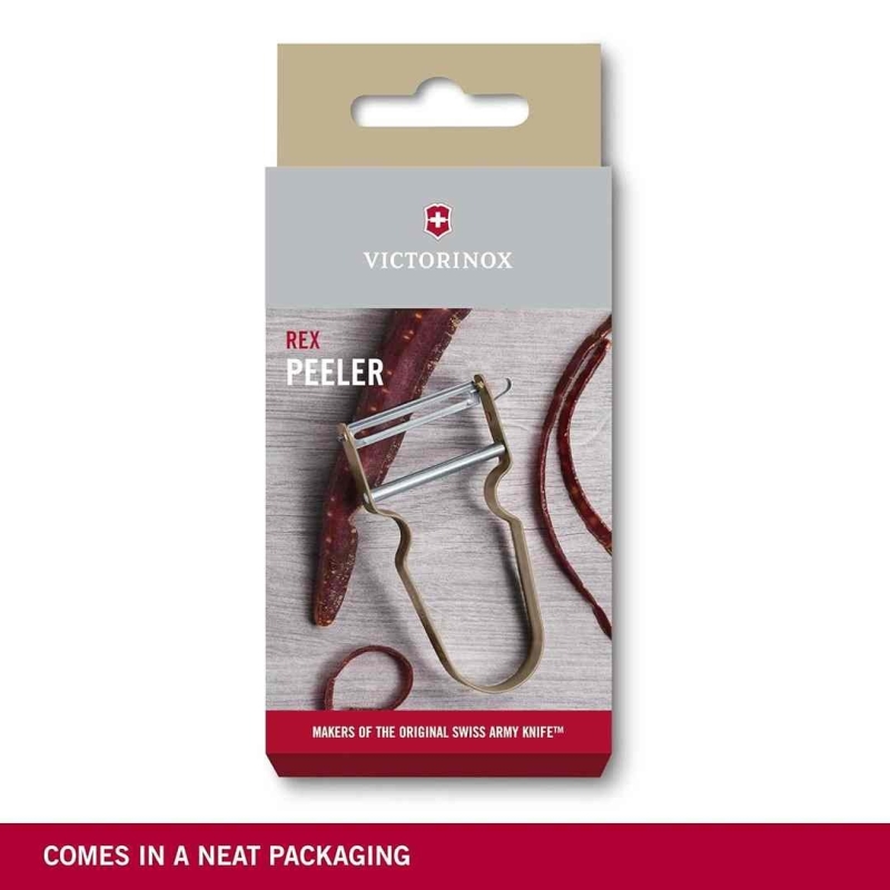 The Victorinox Rex Peeler, a kitchen staple since 1947, is celebrated for its ergonomic design and enduring performance. Crafted with a sharp stainless steel blade and a lightweight aluminium handle, it is ideal for both left- and right-handed users. The swivel blade conforms to vegetable contours for efficient peeling with minimal waste. Durable, rust-free, and equipped with a vegetable eye remover, the Rex Peeler is a timeless, high-functioning kitchen tool trusted by professionals and home cooks alike.