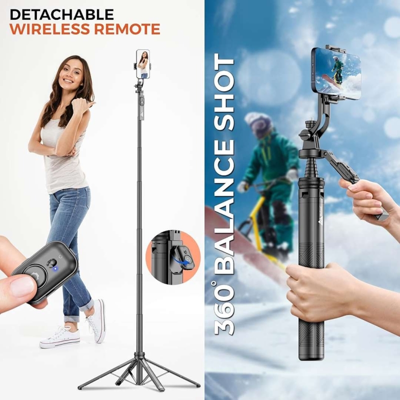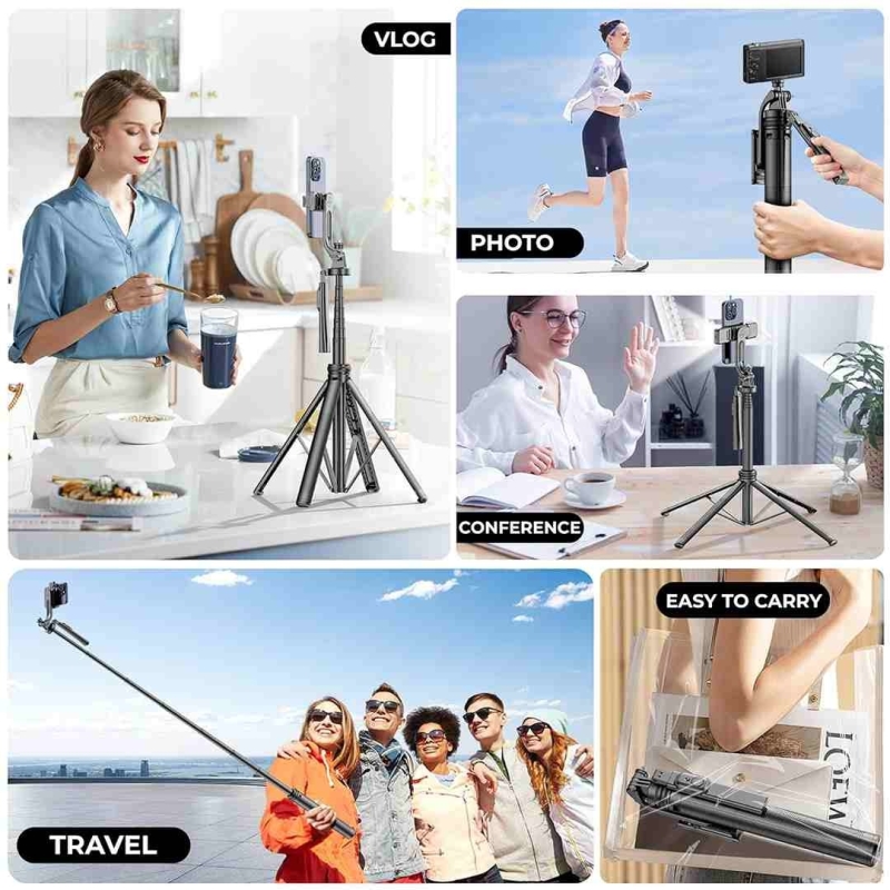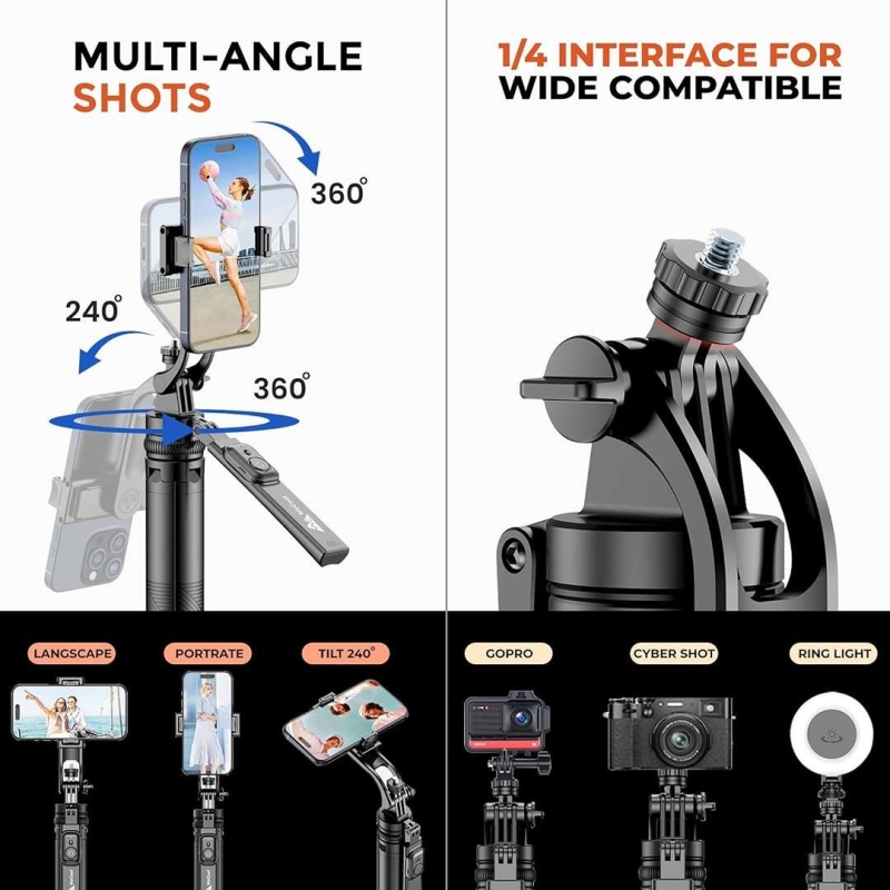 The WeCool S7 is a premium aluminium selfie stick with a reinforced quad tripod base, designed for creators who need maximum height and stability. With an ultra-long 71-inch extendable pole, 360° rotatable handle, and a detachable Bluetooth remote, it’s ideal for vlogging, group selfies, travel photography, live streaming, and overhead shots. Compatible with smartphones, cameras, and action cameras, it delivers reliable performance for both indoor and outdoor use.